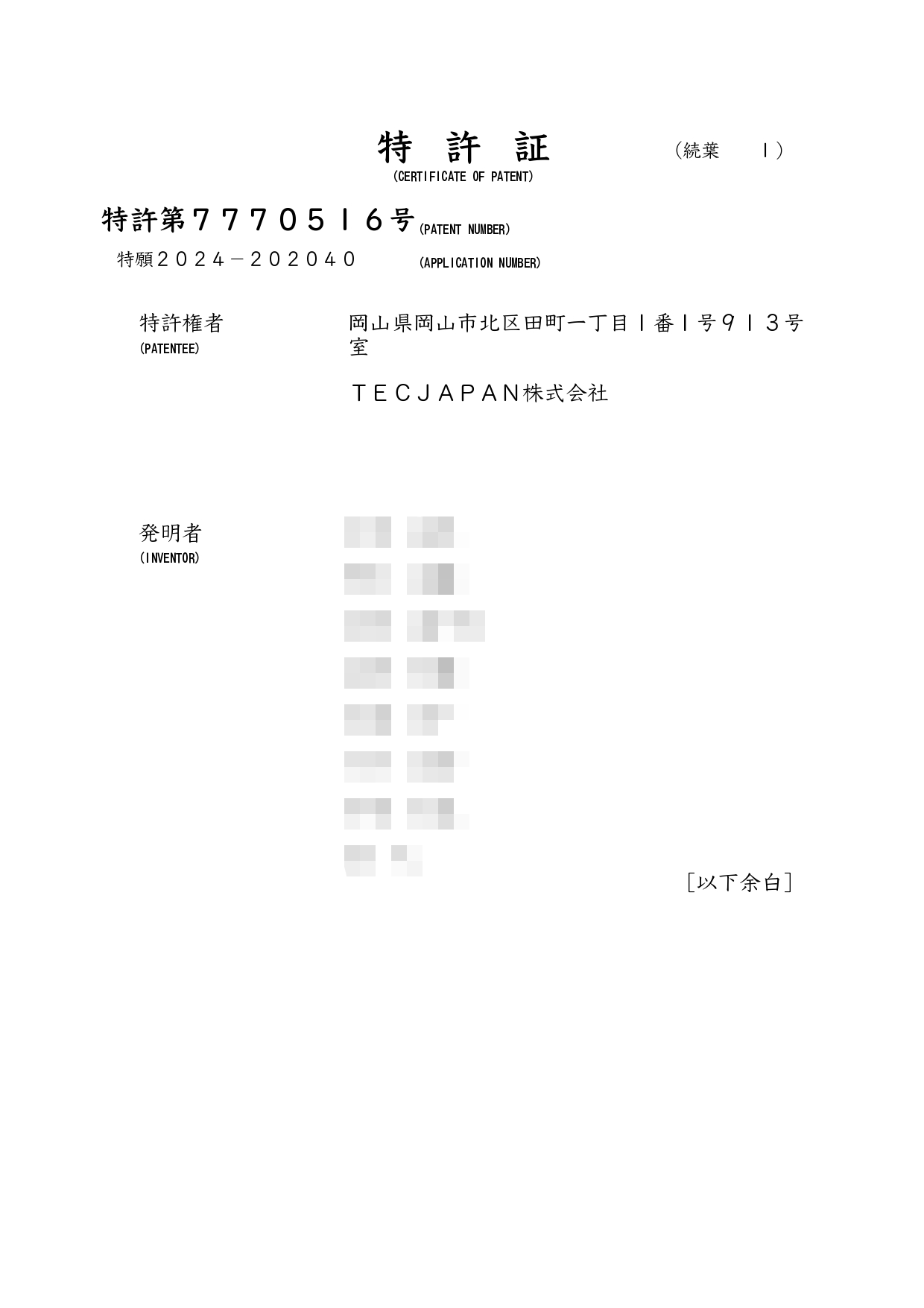 ■特許取得しました。